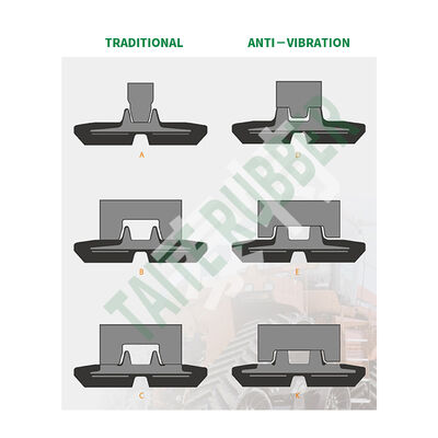 | 4 | Ventaja: Tenemos nuestro diseño patentado de AVT (antivibración) por un ingeniero acústico independiente en 2007,y después de las pruebas realizadas en excavadoras de 3-5 toneladas utilizando tanto la superficie suave y dura y el resultado promedio fue un asombroso 75% menos de vibración que las pistas ordinarias sin diseño AVT. | ||