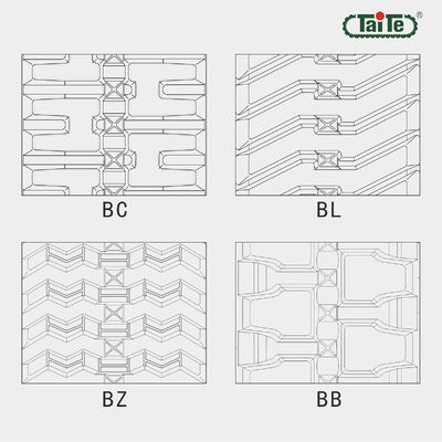 | Fabricante | Tipo de máquina | Orugas orig. | Paso orig. | Eslabones orig. | TAITE-Track | Patrón de la banda de rodadura |